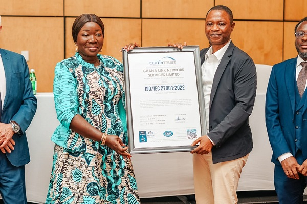 The certification, awarded by CertiTrust following an independent audit, validates Ghana Link’s Information Security Management System (ISMS) and confirms the organisation’s structured approach to safeguarding data confidentiality, integrity and availability across critical operational processes.
