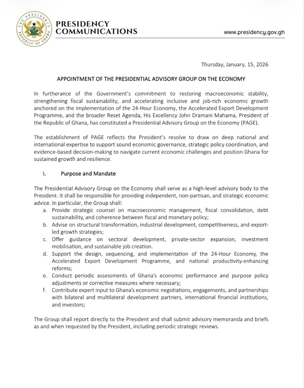 The group aims to help navigate current economic challenges while positioning Ghana for long-term growth and resilience.