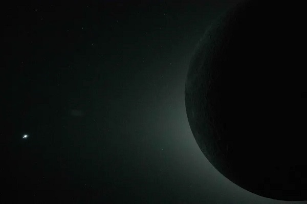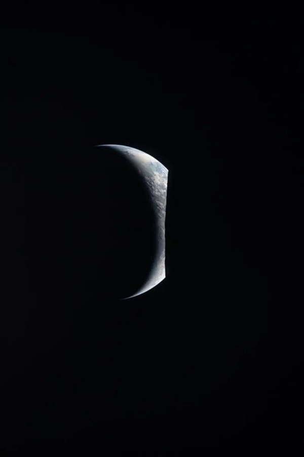 The solar eclipse, which the astronauts witnessed, with the Moon blocking out the Sun