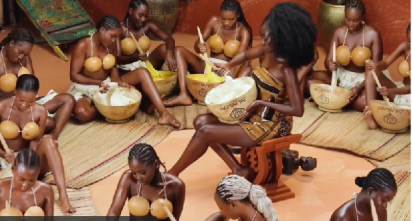 Di girls dey sing one traditional song 'kuriya kuriya – kurjenjen' wey dem dey mix di sheabutter inside big calabash, afta, dem use am rub di bodi of IshowSpeed.