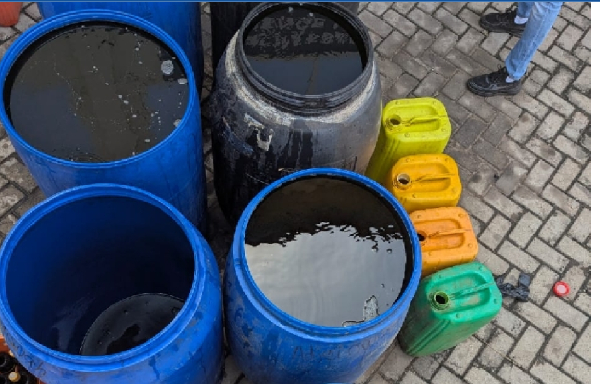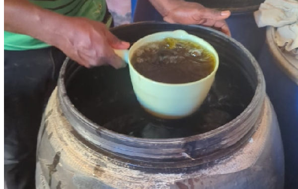 A search of the premises, particularly a storeroom, led to the retrieval of seven barrels of locally manufactured dry gin, commonly known as akpeteshie, and 56 branded Alomo gin bottles, each believed to contain the local spirit. Officers also seized one barrel and a gallon of sobolo.