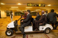 [Photos] Buhari and his team choose golf-cart in India