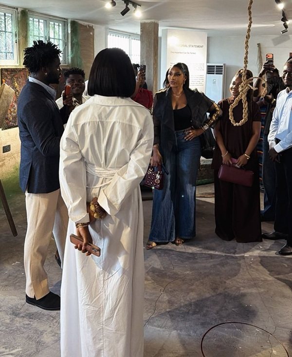 The exhibition, which runs until May 17, showcases works by Sena Burgundy, Evans Akornor, and Kwadwo Peprah, exploring themes around identity, imperfection, and cultural expression.