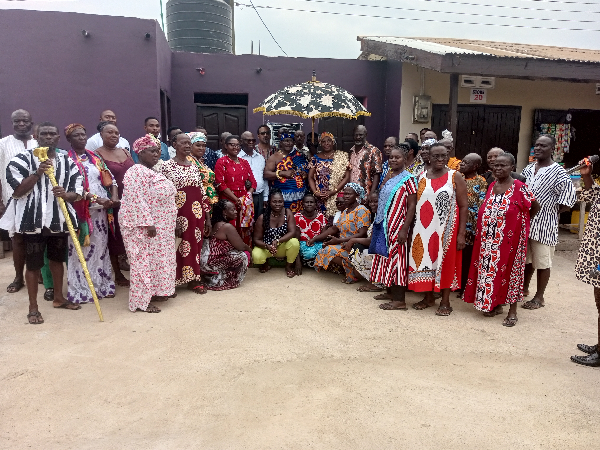 The commissioning ceremony was attended by traditional authorities, local government officials, traders, and residents. Among those who assisted with the unveiling were Mrs. Asi Quaye and her family, and the District Chief Executive for the Okere District Assembly, Hon. Eric William Ayettey.