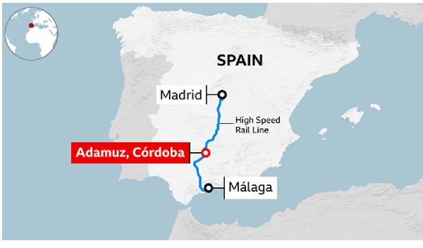 Rail network operator Adif said the collision happened at 19:45 local time (18:45 GMT) on Sunday, about an hour after one of the trains left Málaga heading north to Madrid, when it derailed on a straight stretch of track near the city of Córdoba.