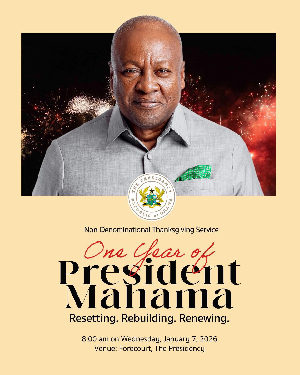 A non-denominational thanksgiving service will be held today, Wednesday, January 7, 2026, to commemorate one year since President John Dramani Mahama assumed office.