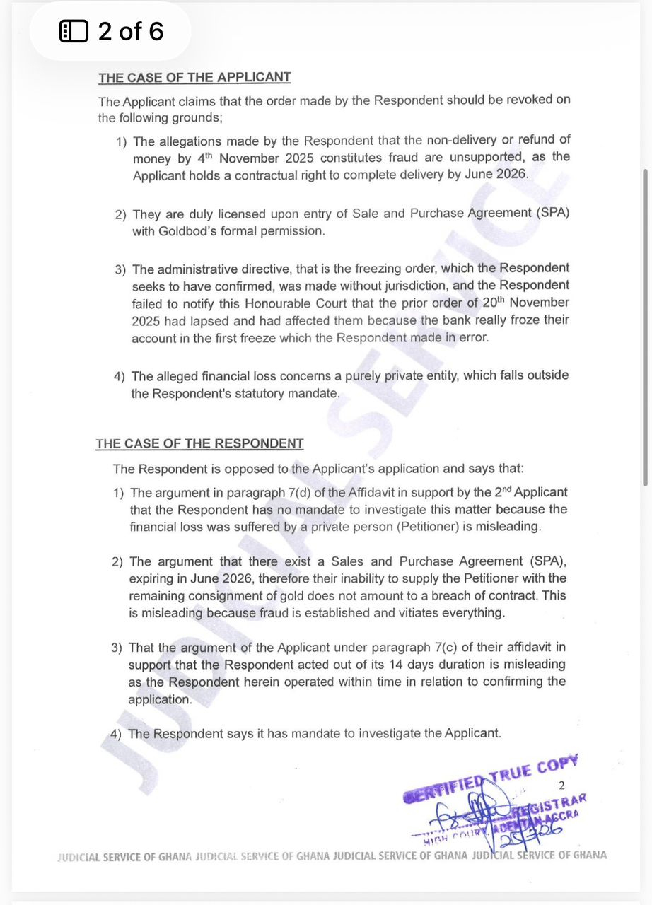 According to Kwamigah-Atokple, the matter stems from a commercial gold supply agreement between Sesi-Edem Company Limited and JG Resources Ltd, covering June 2025 to June 2026.