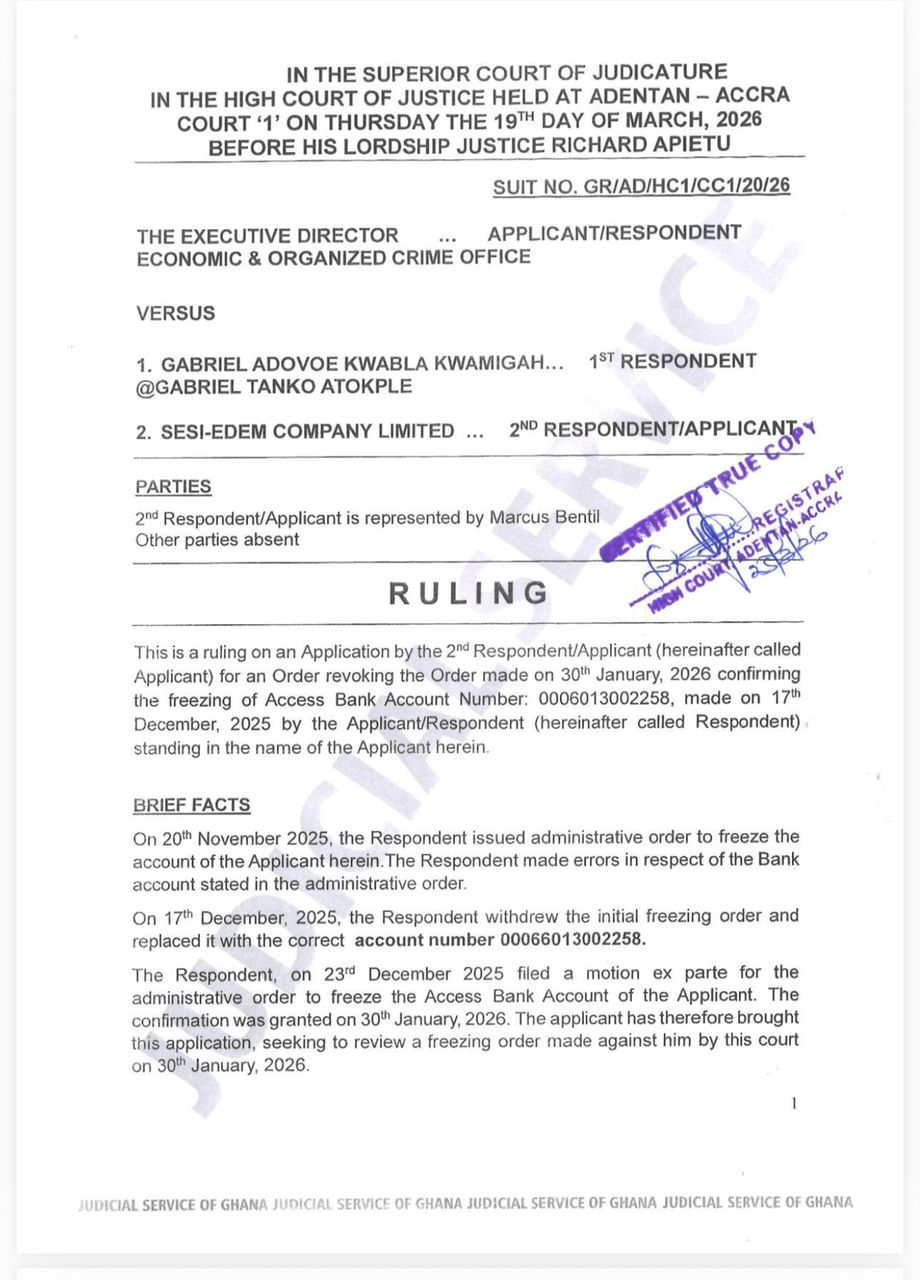 Kwamigah-Atokple traces the origins of the dispute to November 2025, when EOCO initiated an investigation into Sesi-Edem Company Limited, a company he (Kwamigah-Atokple) founded, over allegations of defrauding by false pretences and money laundering linked to a commercial transaction with JG Resources Ltd.