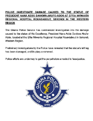 The Ghana Police Service has begun investigations into seeking the person responsible for damaging the status erected in praise of President Nana Addo Danquah Akufo-Addo at sekondi.