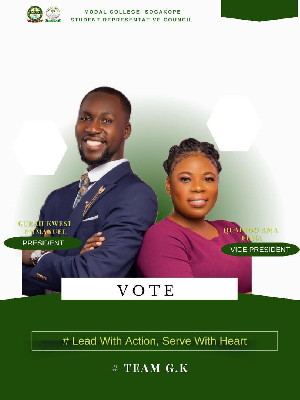 Mr. Gurah Kwesi Emmanuel and Madam Qainoo Edna have been elected as the new SRC President and Vice of Modal College in Sogakope after securing a landslide victory with an impressive 79% of the total votes cast during the just-ended SRC elections.