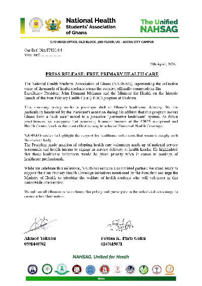 NAHSAG Applauds Launch of Free Primary Health Care, Hails Shift from ‘Sick Care’ to Prevention in Ghana