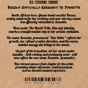 In a defining moment of artistic evolution, South African-born, Ghana-based singer Svnsetta has officially unveiled her new identity following a complete rebrand from her previous stage name, Beezus. Known for her soothing, mind-blowing vocal texture and emotionally rich sound, Svnsetta steps confidently into this next chapter under the creative powerhouse, The Revolt Tribe.