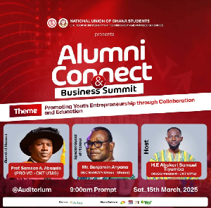 Joining him are Prof. Samson A. Abagale and H.E Abukari Samuel (PRO VC, CKT UTAS), with NUGS President Chano moderating. The summit will convene students, alumni, and stakeholders to strategize on Ghana’s entrepreneurial future.
