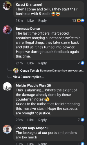 Following the discovery of a huge collection of counterfeit currency and probable gold bars hidden within twelve 20-foot shipping containers, Ghanaians have expressed shock.