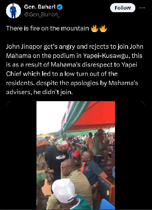 The disagreement between John Jinapor, the Member of Parliament for Yapei-Kusawgu, and former President John Mahama has sparked a lot of tension in the area. It all started when Mahama made some comments that were perceived as disrespectful to the Yapei Chief during a community event. Jinapor, who was invited to join Mahama on stage, declined to do so, stating that he couldn't stand with someone who disrespects their chief.