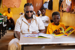 The DJ Mensah Foundation - a charitable organization founded by award-winning Ghanaian disc jockey, Michael Ayenu Mensah popularly known as DJ Mensah - has donated school desks and learning materials to the Akokoase AEDA School in the Central Region of Ghana.
