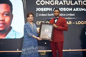 Ghana's finest entrepreneur and CEO of United Swift Logistics Limited, Joseph Ainoson Akumanyi has been honoured Best CEO of the Year -Logistics at the recently concluded 2025 Ghana CEO Awards held at Kempinski Gold Coast Hotel.