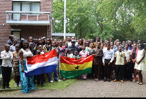 A group of over 100 Ghanaian students who participated in Edibeck Consult's cultural exchange summer camp and educational tour across the Netherlands, Germany, Belgium, and France paid a courtesy call on Ghana's Ambassador to the Netherlands, His Excellency Francis Danti Kotia, in Wassenaar.