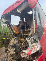 On the Mankessim-Fosu N8 highway, a tanker carrying 54,000 liters of gasoline collides.