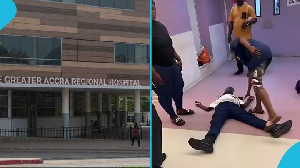 Ridge Hospital, Greater Accra Regional Hospital, Ridge attack, Security guard The security guard who was attacked at Ridge Hospital gives his account of what happened.The man who spoke to GhOneTV in Accra claimed that when he began the closing exercise, he noticed a young man waiting at the entrance and asked to step aside so he could lock the door. Photo credit: Ridge Hospital Source: Facebook.