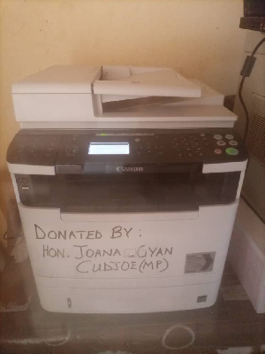 The Member of Parliament for Amenfi Central in the Western Region, Joana Gyan, has donated a brand new Canon MR 6100 photocopier/printer to Tumantu D/A Basic School located in her constituency.