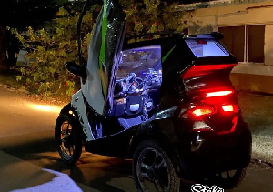 With remarkable ingenuity and flexibility, Dr. Ansah painstakingly constructed about 85% of the cycle automobile over the course of a year. For the structure, he used galvanized pipes, and for the chassis and suspension, he recycled motorbike supports. The car has a 110cc engine and a number of features, such as parking assistance, an anti-theft system, and a Bluetooth speaker platform. The cycle automobile skillfully combines practicality and creativity, with a top speed of 54 km/h.