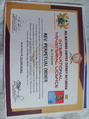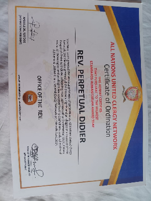 During the ceremony, she was not only handed her degree certificate but also received a “Certificate of Ordination” from the *All Nations United Clergy Network.
