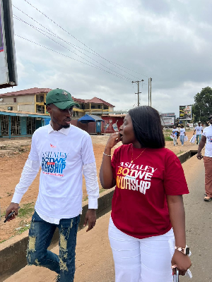 Metro TV presenter and media personality Adwoa Ahenewaah joined forces with Apostle Albert Delali and the Favor Empire Ministry on a vibrant float through the streets of Ashaley Botwe as anticipation builds for the upcoming event, Ashaley Botwe Stands in Worship.