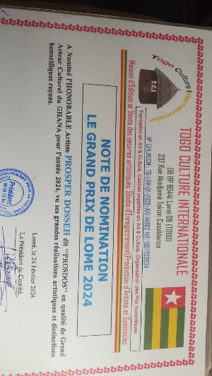 The nomination document, dated February 24, 2024, highlights Prosdos's "great artistic achievements and honorary distinctions received." This recognition from a respected cultural organization in Togo solidifies his growing influence in the West African music and arts scene.