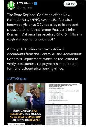 Kwame Baffoe, better known as Abronye DC, the Bono Regional Chairman of the New Patriotic Party (NPP), has levelled severe allegations against former President John Dramani Mahama. He claimed Mahama collected GH¢15 million in ex-gratia payments after leaving government in 2017. Abronye DC claims he has official paperwork to back up his accusations.
