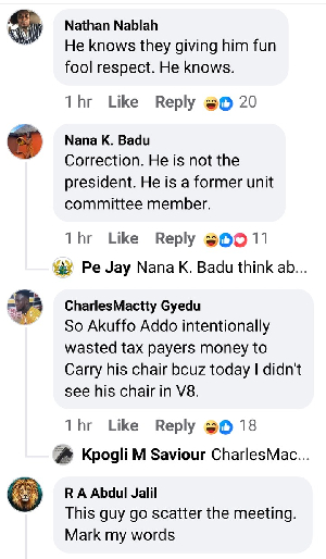 Many people, including party members and supporters who had congregated at the hotel, were drawn to his presence. As he got out of his car, some of them could be seen yelling his name and clapping. Others were ecstatic and joyful, expressing their appreciation and respect for the former president. "Akufo-Addo! The man of action!" exclaimed one of the backers.
