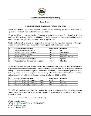 The NCA stated that while many stations rectified their violations during the grace period, the suspended broadcasters failed to resolve key issues, such as illegal use of transmission frequencies and unapproved transmitter sites.